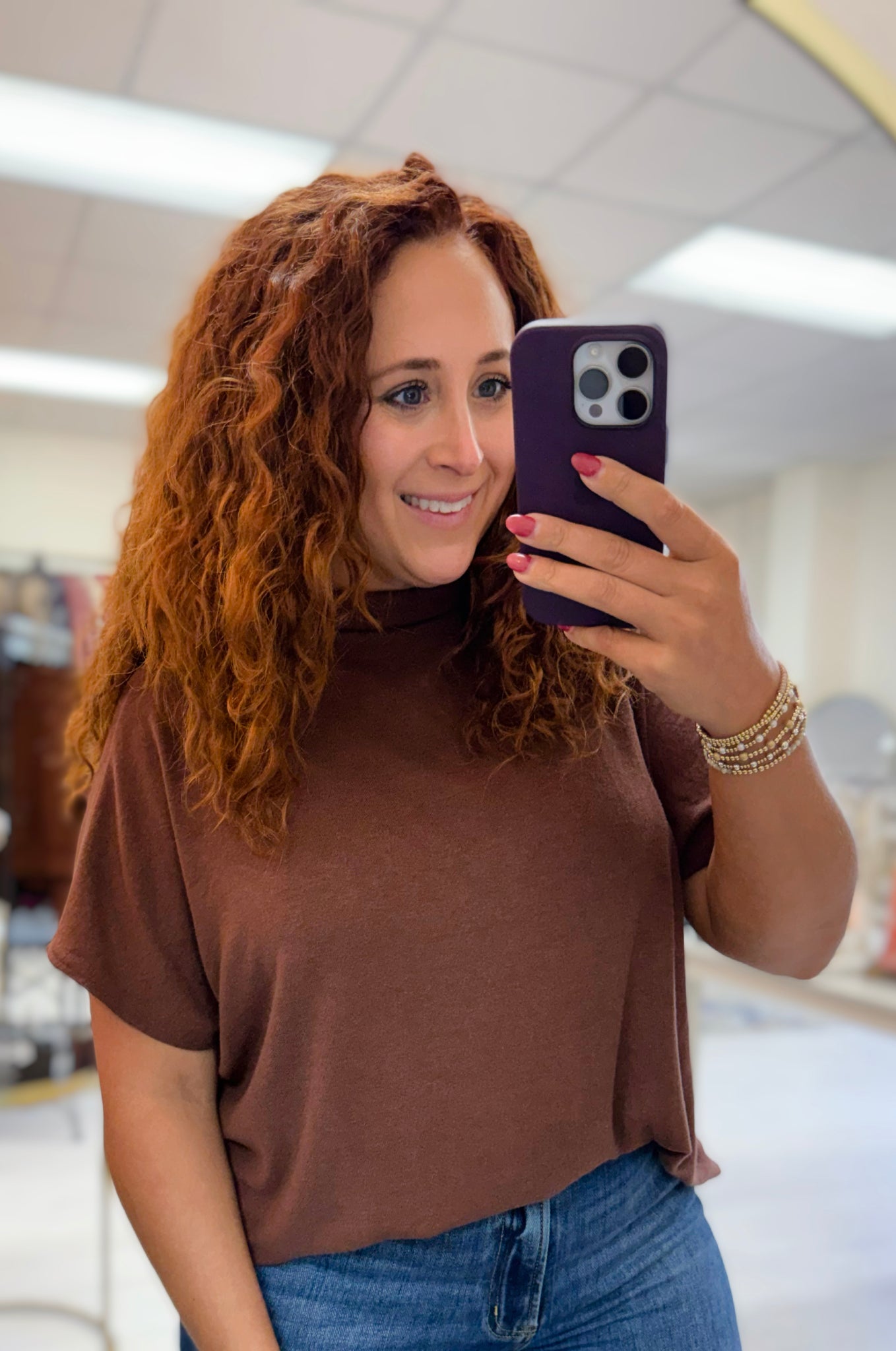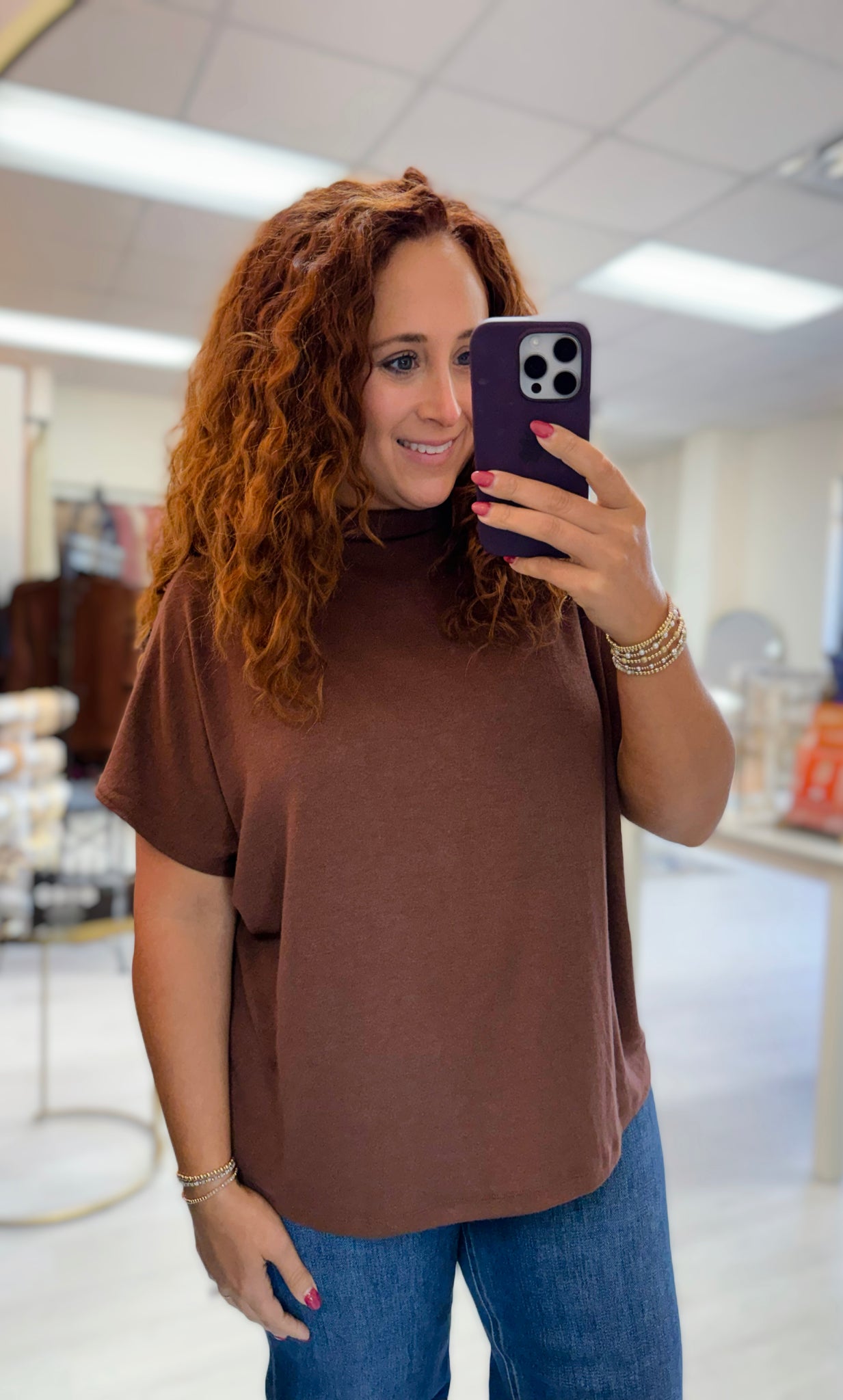 The definition of easy fall style π€ This mocha mock-neck top is soft, flowy, and oh-so-versatile. The fabric has the perfect drape, and that mock neckline gives it just the right touch of polish. Itβs not cropped β just front-tucked here for a little shape β and it pairs effortlessly with denim, skirts, or your favorite trousers.
